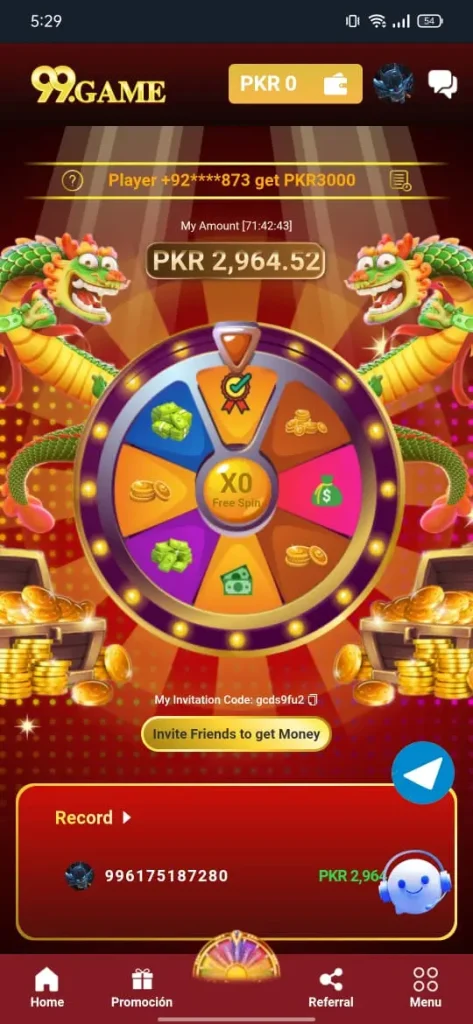 99Game rewards users for inviting others to join the platform. When a friend signs up using your referral link and begins playing, both users may receive a bonus. This system allows players to build passive income over time.